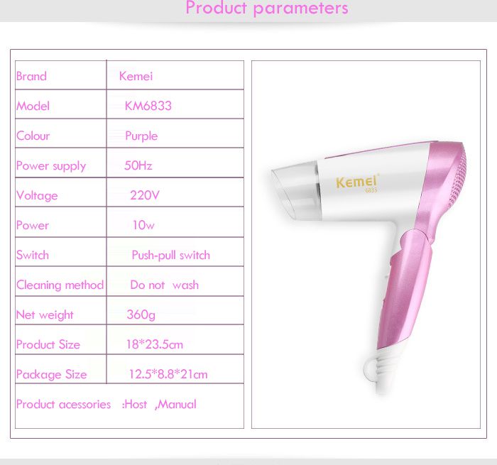 Kemei 1600W KM-6833 Professional Hair Dryer